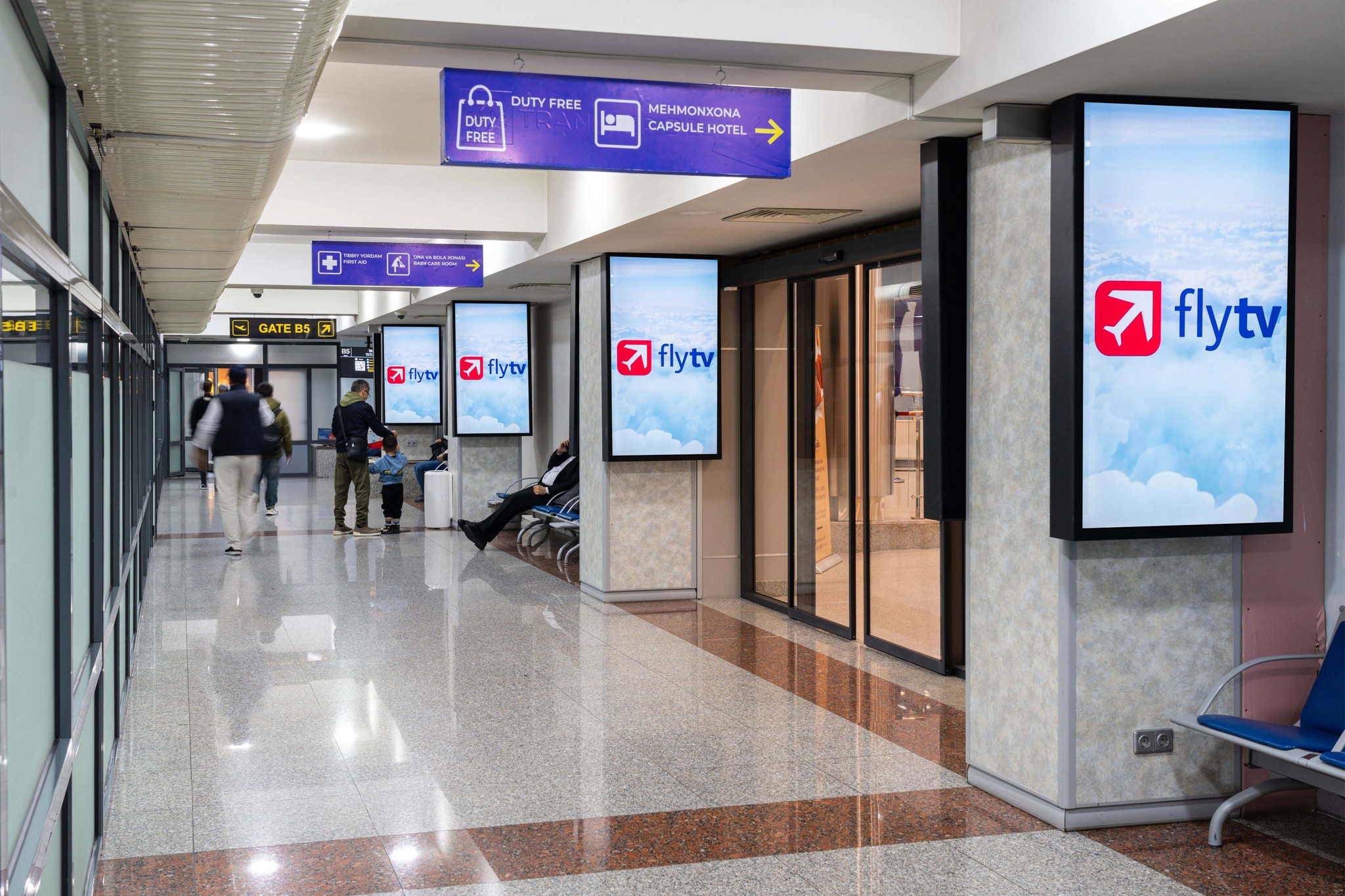 Specifically created for operation at Tashkent International Airport, Indoor Media “Fly tv” is a subdivision of the advertising holding Orient Advertising.